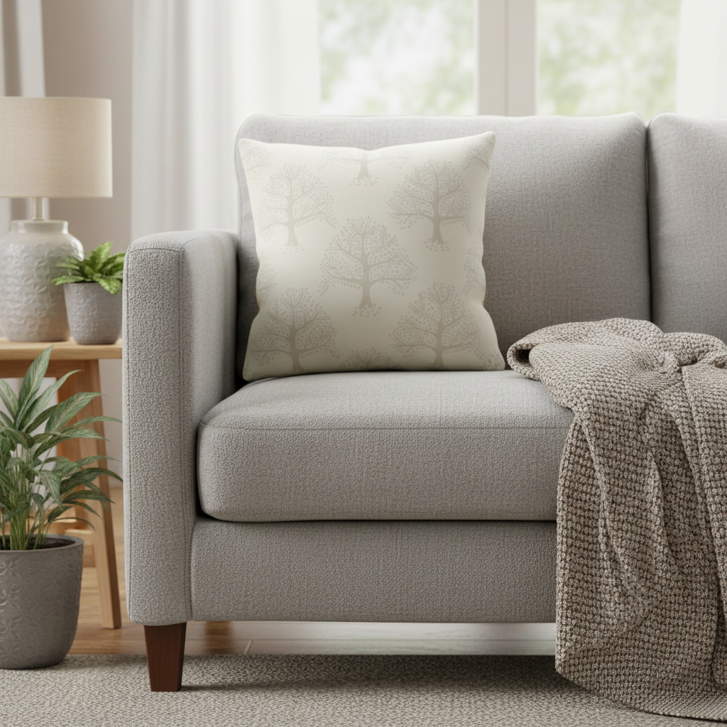 Add a touch of natural elegance and warmth to your living space with the Great Oak Tree Cushion Cover. Featuring a beautifully stylized oak tree pattern in soft cream tones set against a natural background, this cushion cover brings a cozy, earthy vibe to any room.