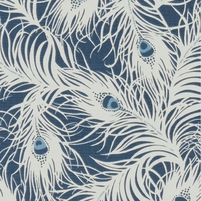 This cushion cover features a stylish design inspired by peacock feathers in a soft, muted navy blue and white color palette. The intricate feather pattern adds an elegant and natural touch, making it a perfect decorative accent for modern and classic interiors alike. The cover is shown without background, highlighting its detailed texture and vibrant design.