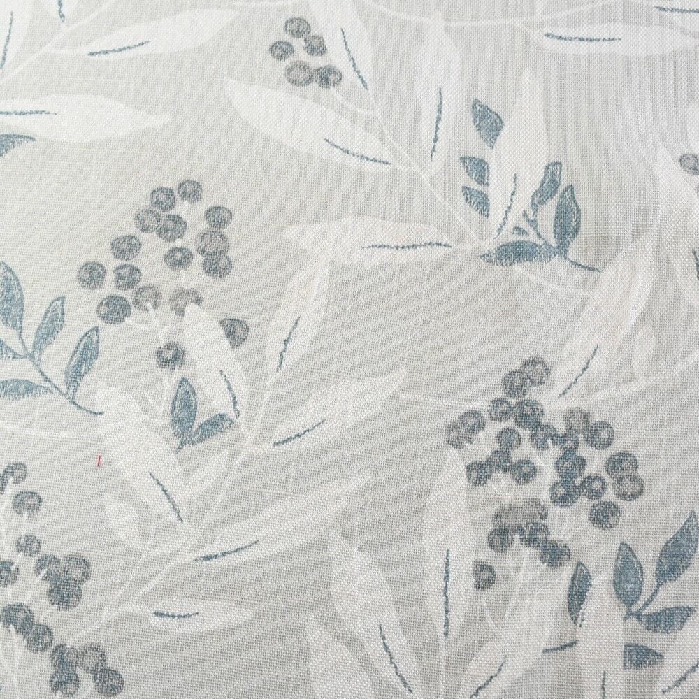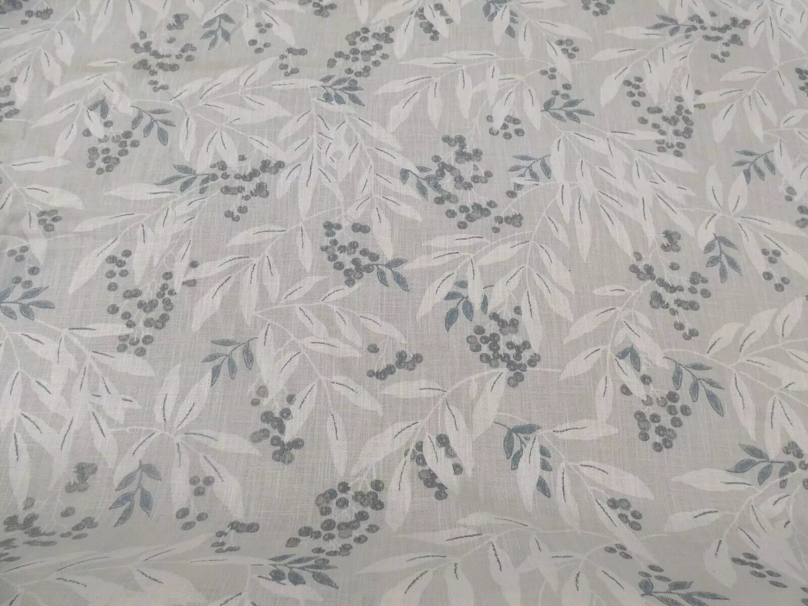 Pretty foliage print in with a grey background andwhite leaves , 83% Viscose 17% Linen .